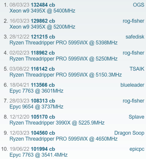 现阶段在CineBench R23中多核性能跑分可达111383,已经和标准版相差无几,HWBot世界纪录榜单上也能进入TOP10。
