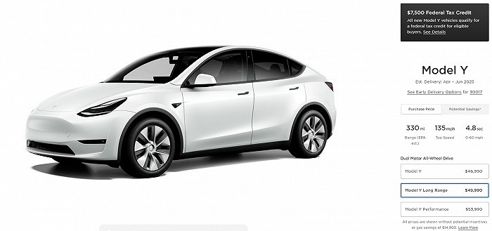 不过,值得注意的是,今日,特斯拉美国将Model Y长续航版售价下调9.1%至49990美元,Model Y高性能版售价下调8.5%至53990美元,Model 3后轮驱动版售价下调7%至39990美元。
