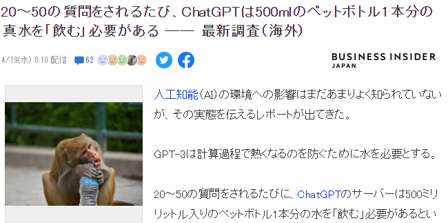 ·专家们表示,看似表面上好像不太多,但是考虑到如今ChatGPT的火爆程度,背后悄悄消耗的水资源已经是相当惊人的天文数字般的损耗。