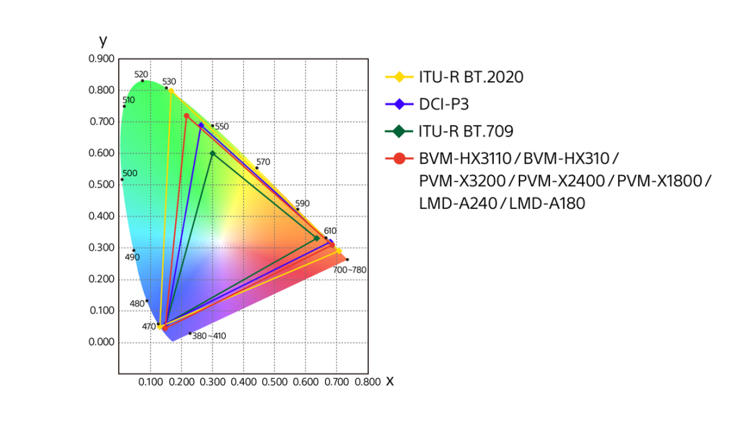 BVM-HX3110采用与索尼其他专业级监视器相同的色域,能够与多款监视器无缝协作,如BVM-HX310、PVM-X和LMD-A系列监视器,包括刚刚发布的宽色域18.4英寸高清HDR监视器LMD-A1802。