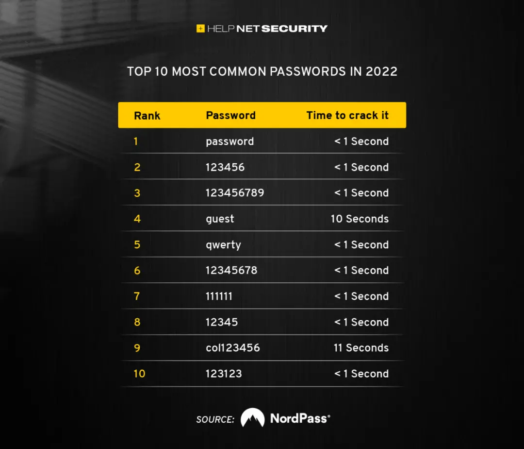 2022年最常用的10个密码|HelpNetSecurity