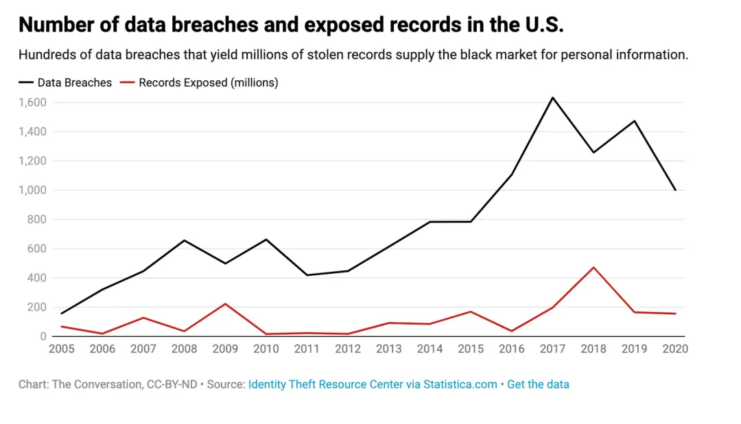 2005-2020,美国数据泄漏和曝光记录统计|PBS