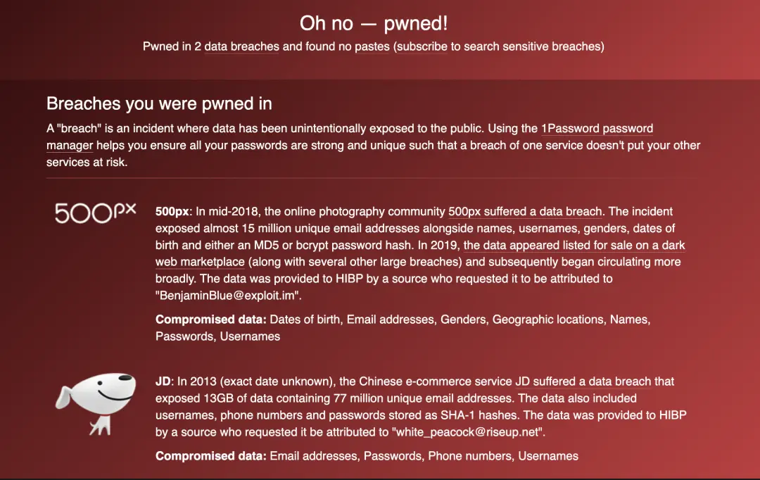 如果你疑心自己的信息是否已经被泄漏的话,可以到 haveibeenpwned.com 查看一下。