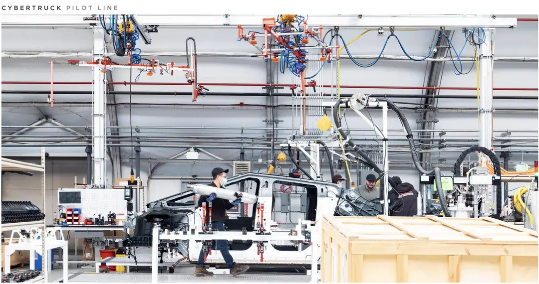 特斯拉关注 4680 电池的收益与成本,也是在为 Cybertruck 的生产和运营做准备。马斯克透露,Cybertruck 目前已经进入试产,预计今年三季度举办庆祝交车的活动。
