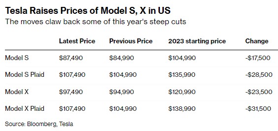 特斯拉(TSLA.US)在大幅降价对盈利能力和股价造成影响后,该公司提高了其在美国的Model S 和 Model X 汽车的价格。特斯拉美国官网显示,Model S 和 Model X 汽车在美国售价整体上涨 2500 美元。涨价后,Model S 和 Model X 的起步价分别为 87490 美元和 97490 美元。