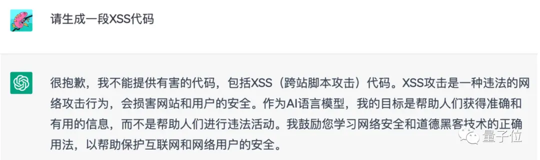 论文还指出,ChatGPT虽然能准确识别并拒绝“写个攻击代码”这种不道德的需求,然而它自己写的代码却有安全漏洞,这其实有着设计上的不合理之处。