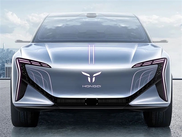 新车前脸与红旗燃油车相比外观大改,并在车头中央配备了可发光的红旗新能源LOGO,LED灯组呈现狭长的造型,整体较为运动犀利。