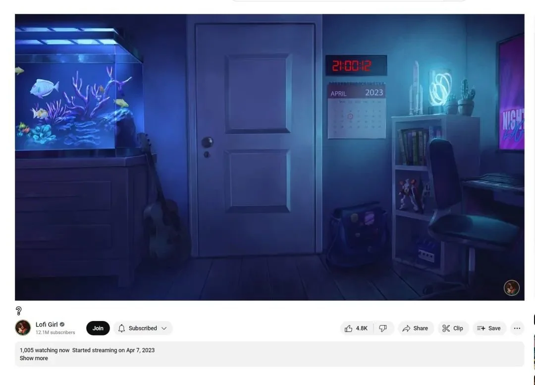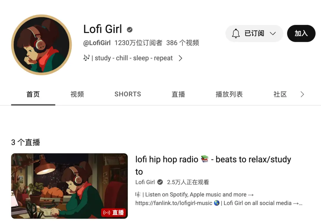 在所有播放 Lofi 歌曲渠道中, YouTube 的 Lofi Girl 频道就是最受欢迎的一个。