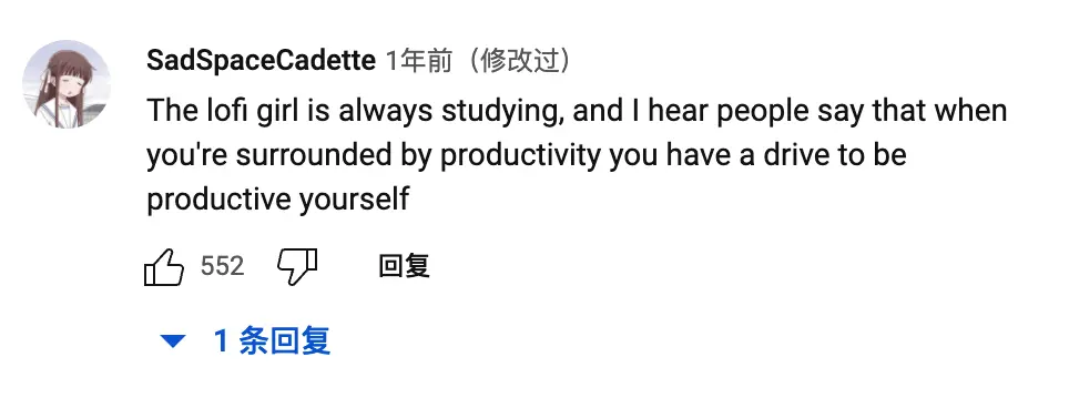 有人说, Lofi Girl 陪伴她走过了压力最大的时期,让自己轻松度过那些日子;还有人说,正是这个不停学习的女孩,让人有了提高生产力的动力。