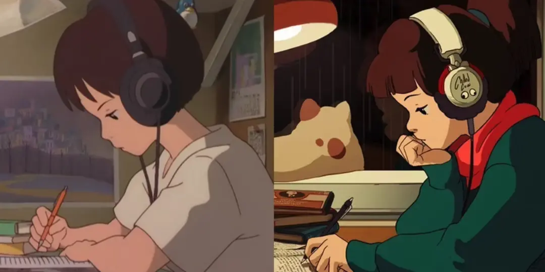 Lofi Girl 频道本叫 ChilledCow ,当时画面采用的是 1995 年动画《 侧耳倾听 》里的角色月岛雯形象。