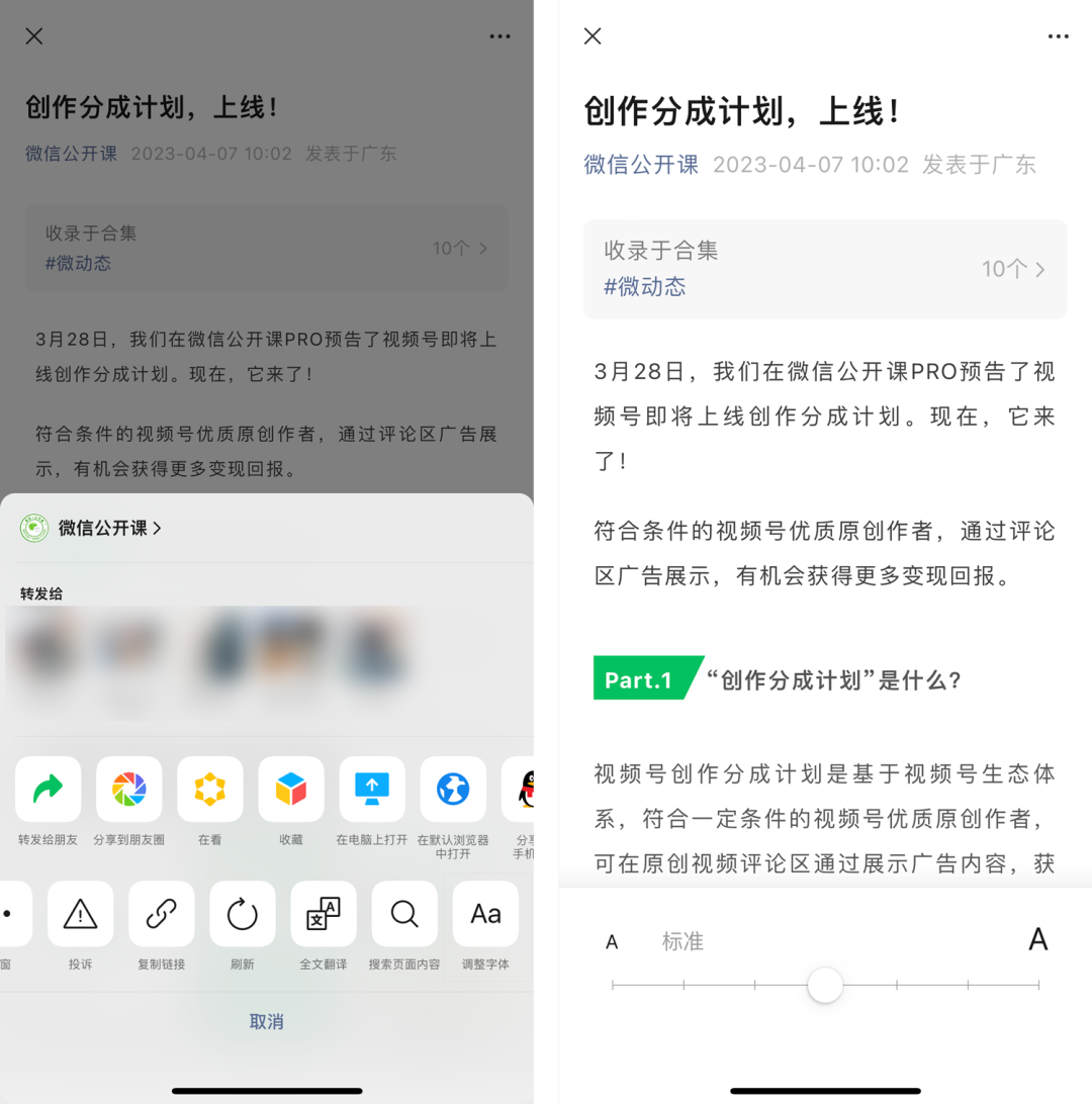 除此之外,微信的“右上角”功能也十分强大,除了转发、分享、在看,还有不少实用功能。