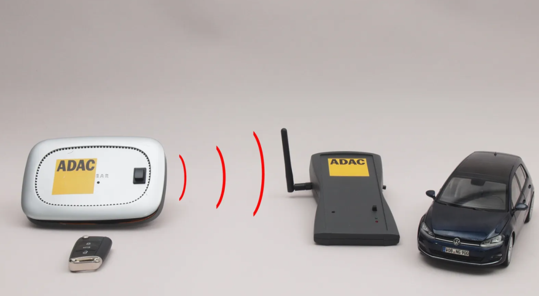 这其实是套专门针对无线钥匙的偷窃技术,成本只需要 2 台无线电设备。一台在车附近,一台放钥匙附近。