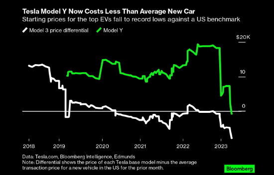 在马斯克一顿迅猛减价操作下,特斯拉Model Y SUV最便宜的版本如今售价低于美国新车平均价格。Model Y基本款如今售价为46,990美元,较美国轿车或卡车的平均价格低759美元。自去年年中以来,这两者的价差变动幅度已超过2万美元。