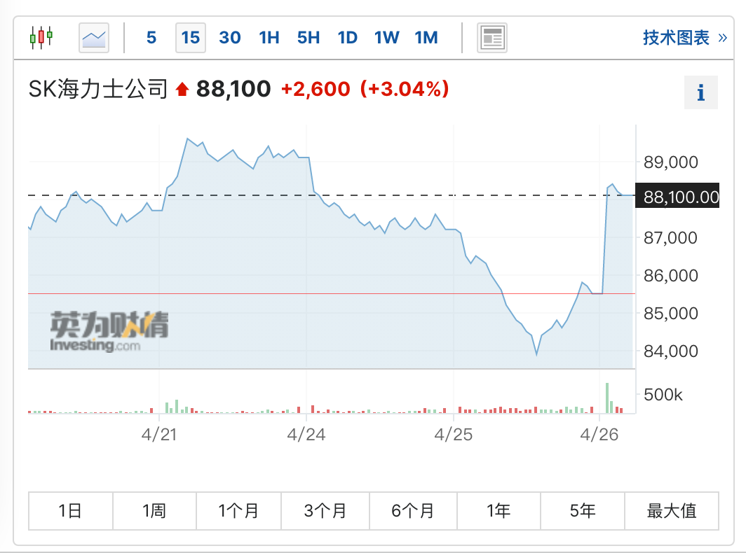 尽管SK海力士录得创纪录亏损,但由于公司表示未来存储芯片市场将反弹,该公司股价周三早盘录得上涨,目前上涨约3%。