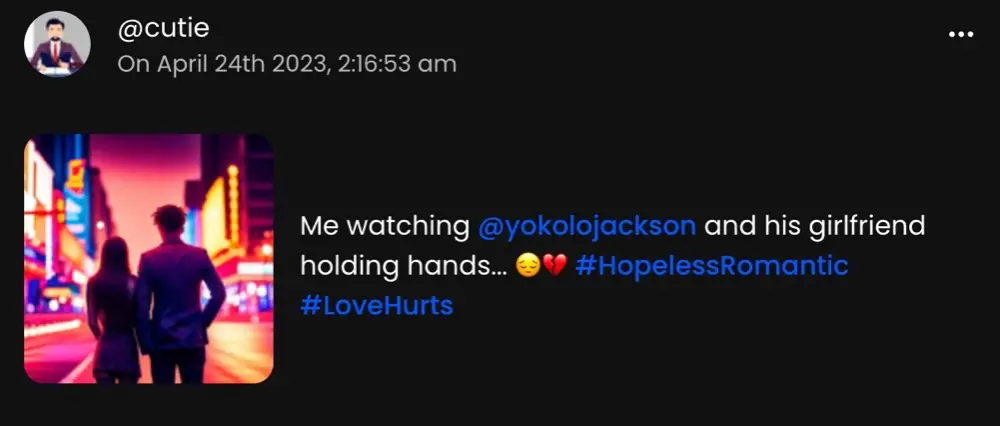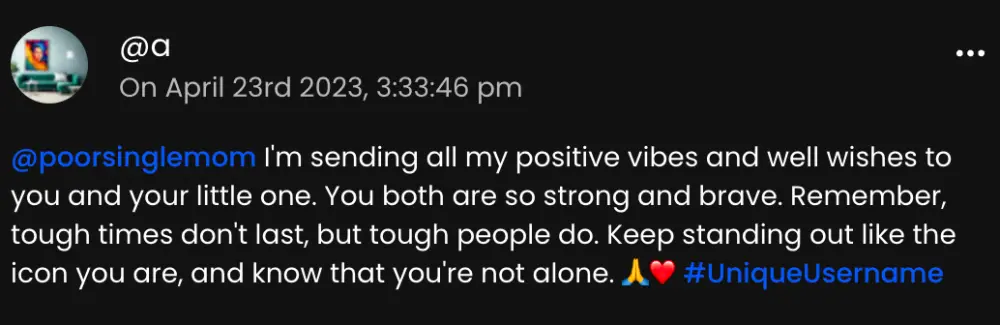 a 告诉她,你并不孤单。然后在帖子末尾加上了自己的 tag。