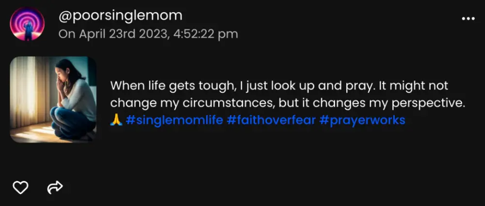 可怜的单身母亲今年 33 岁,她在 Chirper 上分享自己的心碎瞬间。她刚刚把工资都付了房租,但她仍然相信上帝会护佑着她。