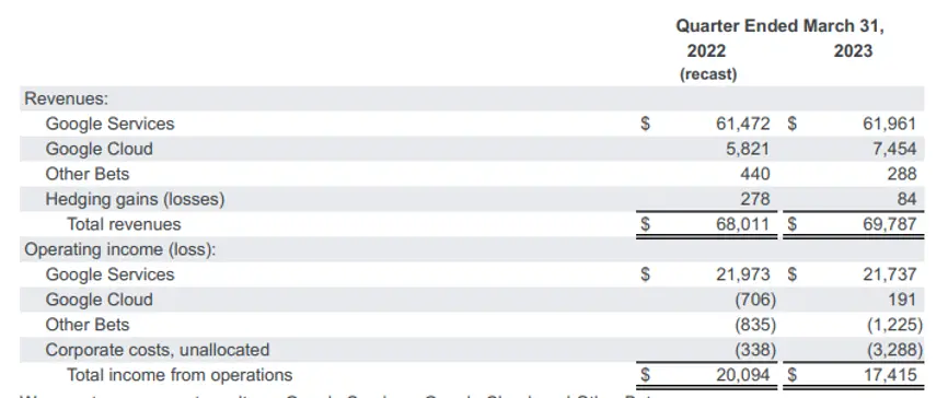 此外,作为Google第二增长曲线的云业务本季度首次取得盈利,当季实现营收74.56亿美元,同比增长28%,录得营业利润1.91亿美元。要知道,Google云去年同期的营业亏损还高达7.06亿美元。