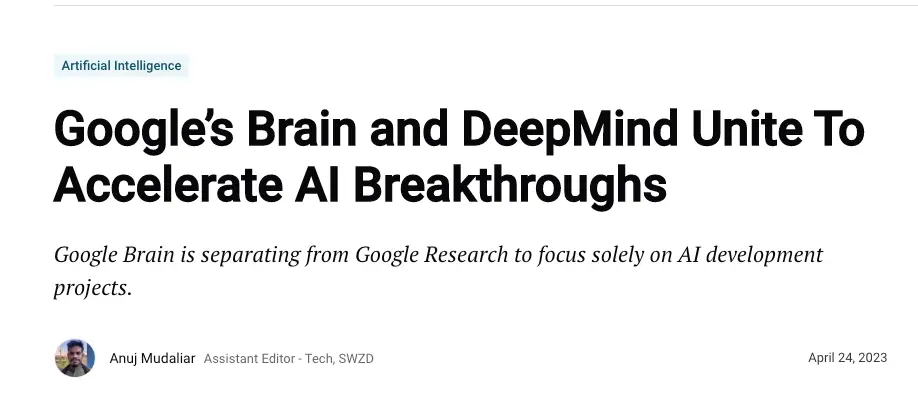 上周,Google宣布将Google研究院之下的Google大脑(Google Brain)和DeepMind合并,共同发力AI研究和应用。为的就是把Google的人才、资源整合到一个团队中,提速AI研究。两家合并之后,目前领导GoogleAI工作的Jeff Dean将担任Google的首席科学家,直接向Pichai汇报工作。