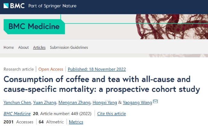 这项研究使用了来自英国生物银行近50万人群的纵向队列数据,分析了咖啡和茶单独或组合饮用与总死亡率和特定原因死亡率(包括心血管疾病、呼吸系统疾病和消化系统疾病)的关联。