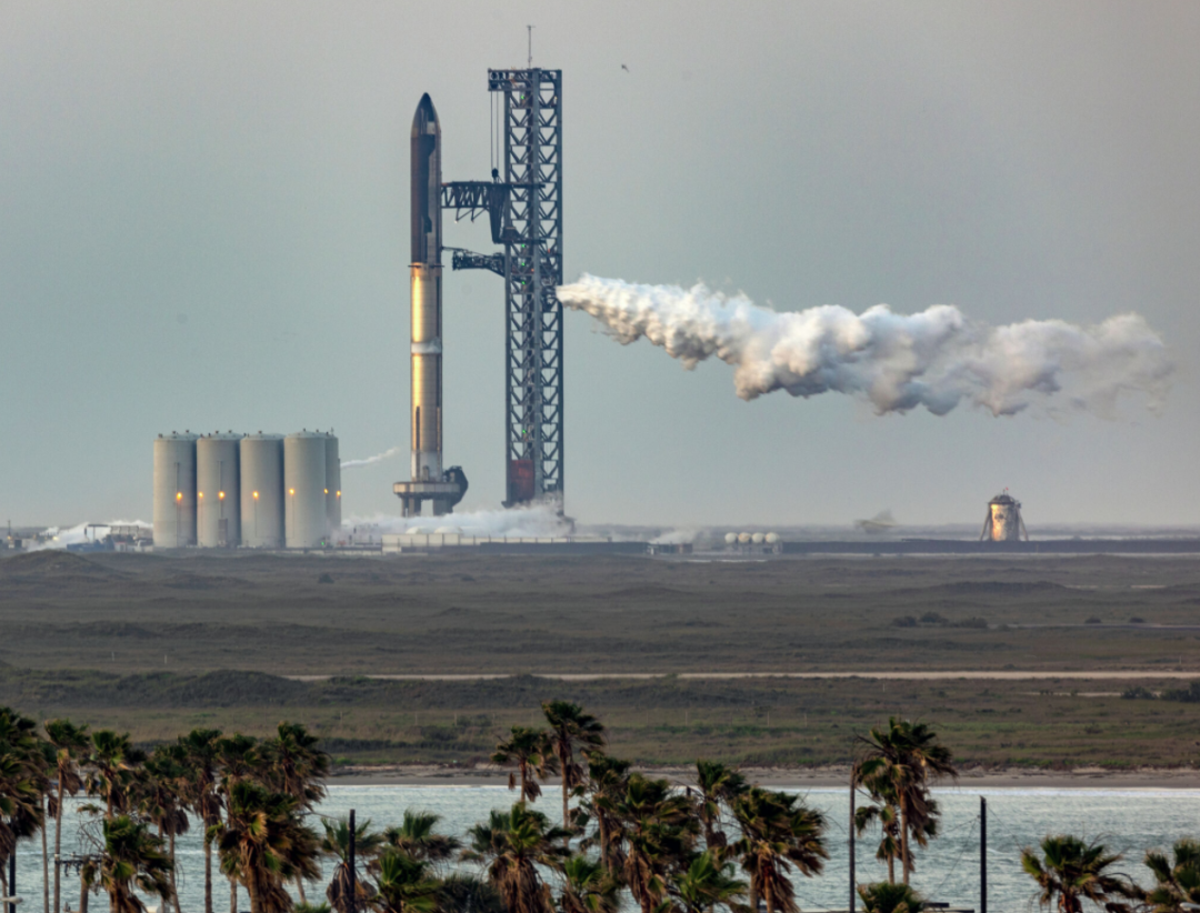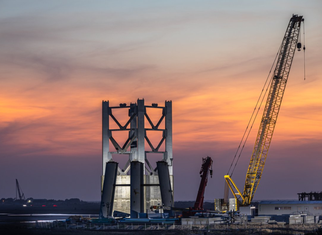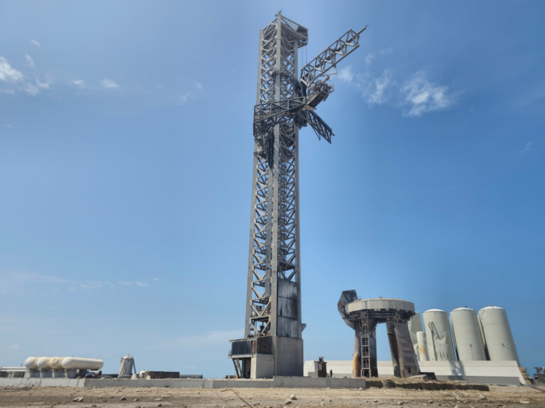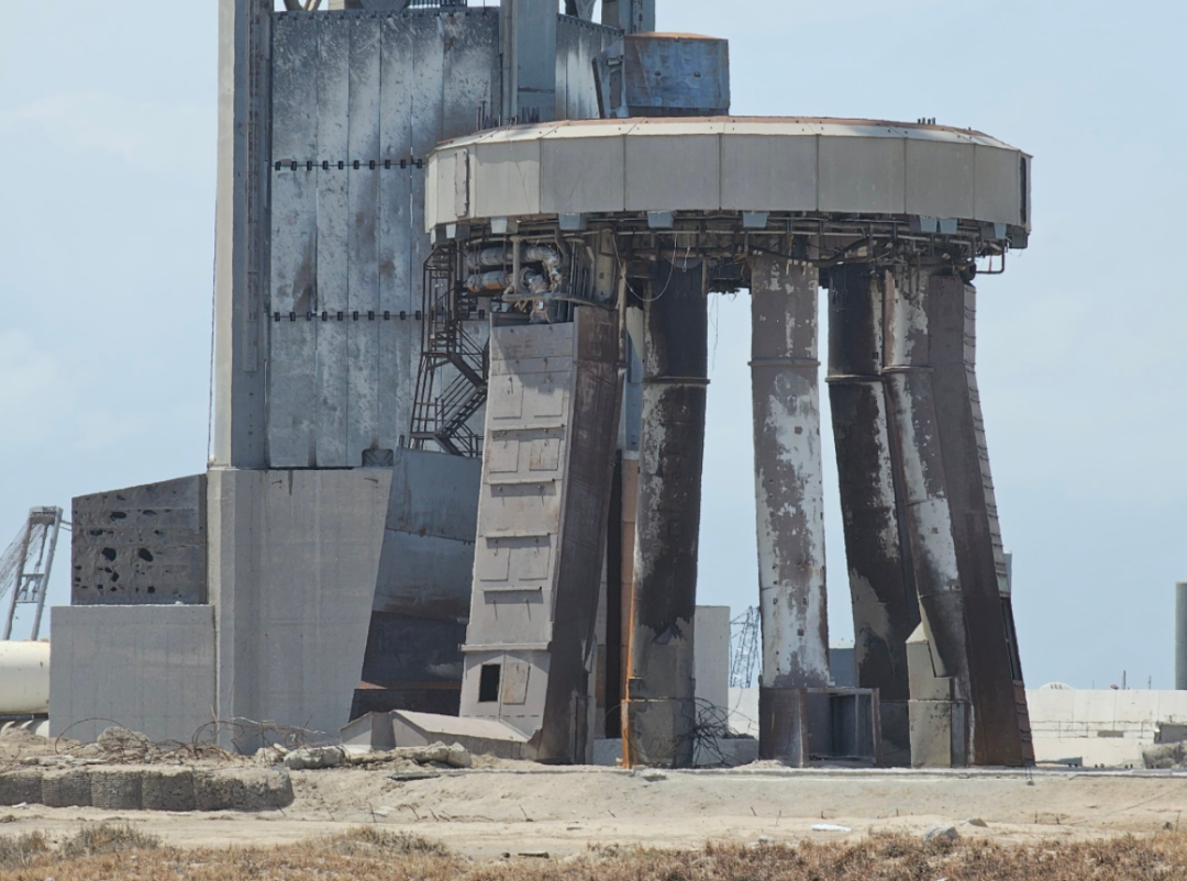 超重-星舰系统采用无导流槽发射工位,通过25m高的发射台来避免发射时高速射流可能带来的破坏。