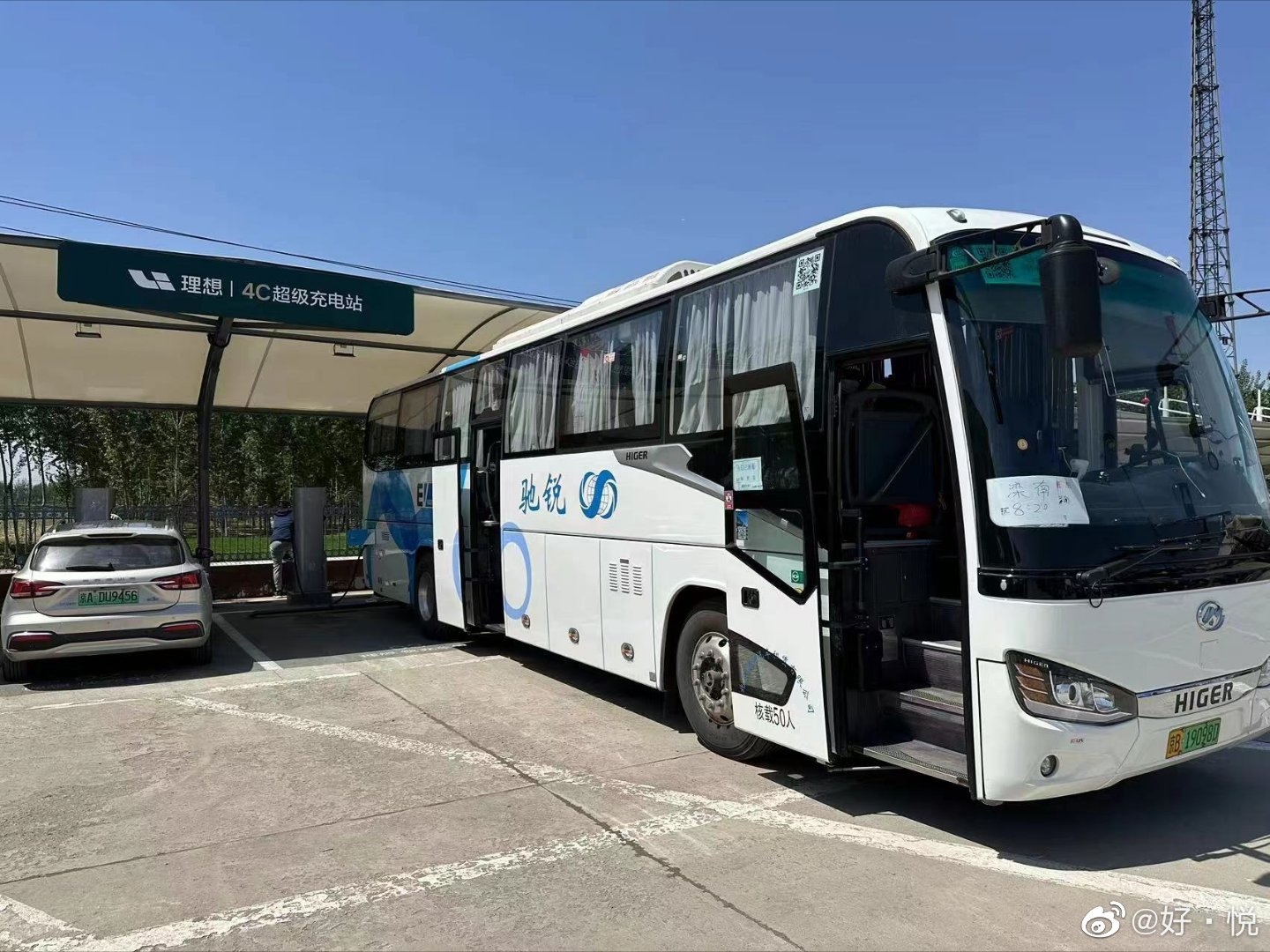 理想超充站根据不同地区有着不同的收费标准,北京地区一般一度电2元出头,这辆大巴车如果要充满,充一次要四五百元。
