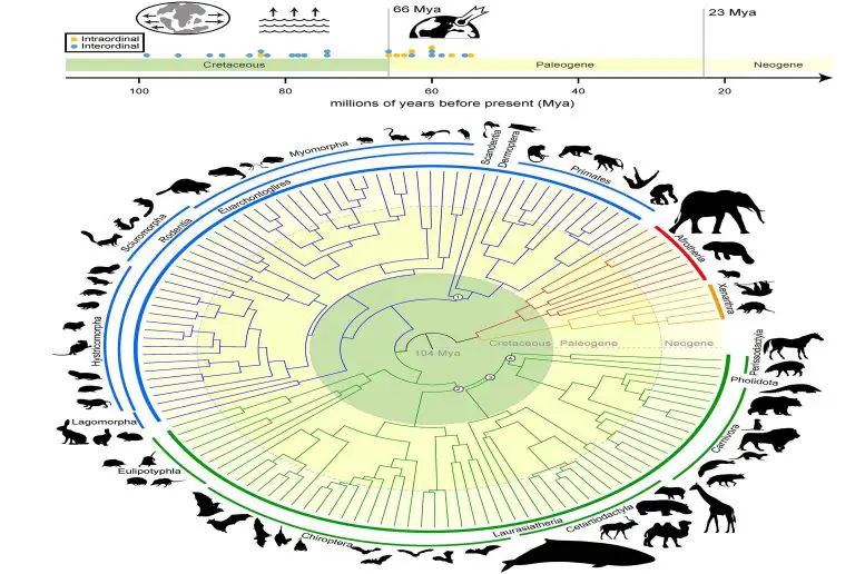 这种加速的多样化速度导致了哺乳动物品系的丰富多样性--如食肉动物、灵长类动物和有蹄类动物今天共享地球。