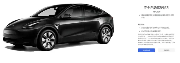 特斯拉中国官网显示,FSD在国内的售价为6.4万元,一半EAP功能已实现,另一半的城市自动辅助驾驶与完全自动驾驶迟迟没有开放,因此才有了车主吐槽是“期货”的说法。