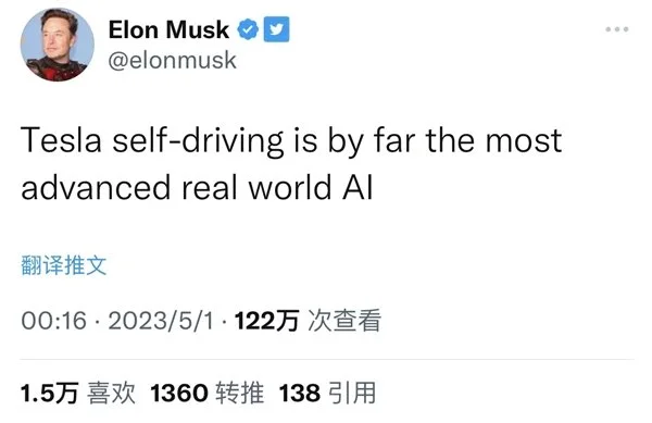 特斯拉CEO马斯克曾多次吹爆特斯拉FSD(完全自动驾驶“Full Self-Drive”)功能“令人惊叹”,今日,马斯克又在Twitter上发文表示,“特斯拉FSD自动驾驶是迄今为止最先进的现实世界人工智能”。对此,有国内网友则表示,“在国内不成立,期货产品”。