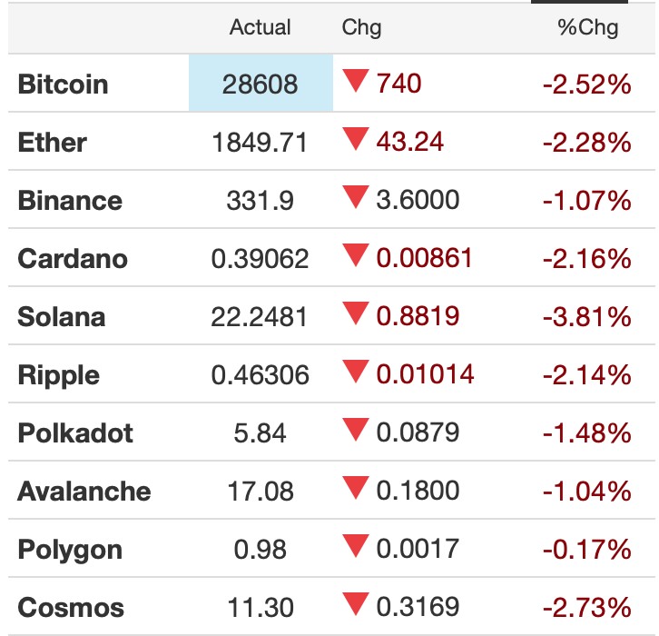 在经历了连续四个月上涨之后,比特币在五月的第一天走弱。截至发稿,比特币跌2.52%,报28608美元/枚。第二大加密货币以太坊也跌超2%,报约1850美元/枚。今年以来,比特币从去年的加密货币暴跌中大幅反弹,涨幅达72%。