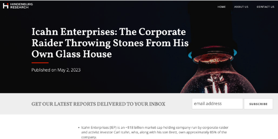 兴登堡研究:伊坎企业经济结构 “类似庞氏骗局”