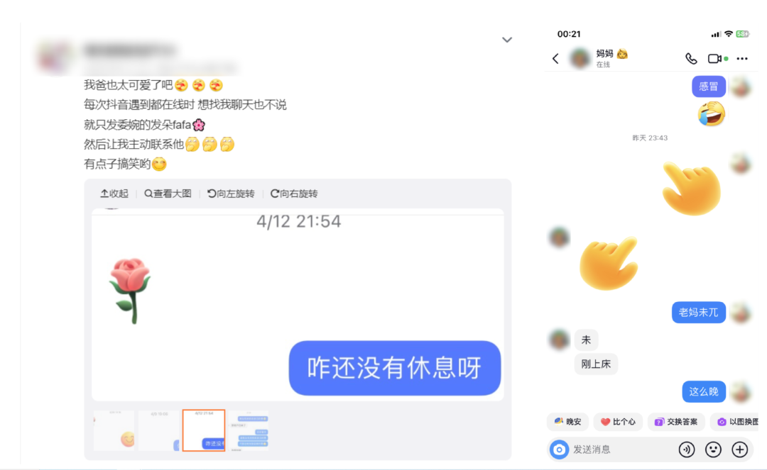 不知道大家有没有发现一件事,越来越多的人,开始抛弃微信,用抖音聊天了。比如很多老年人,都把自己的社交圈子,搬进了抖音。同事脖子右拧的妈妈,跟好姐妹都是在评论区里畅聊。父母和子女的聊天,很多也都开始转换阵地了。