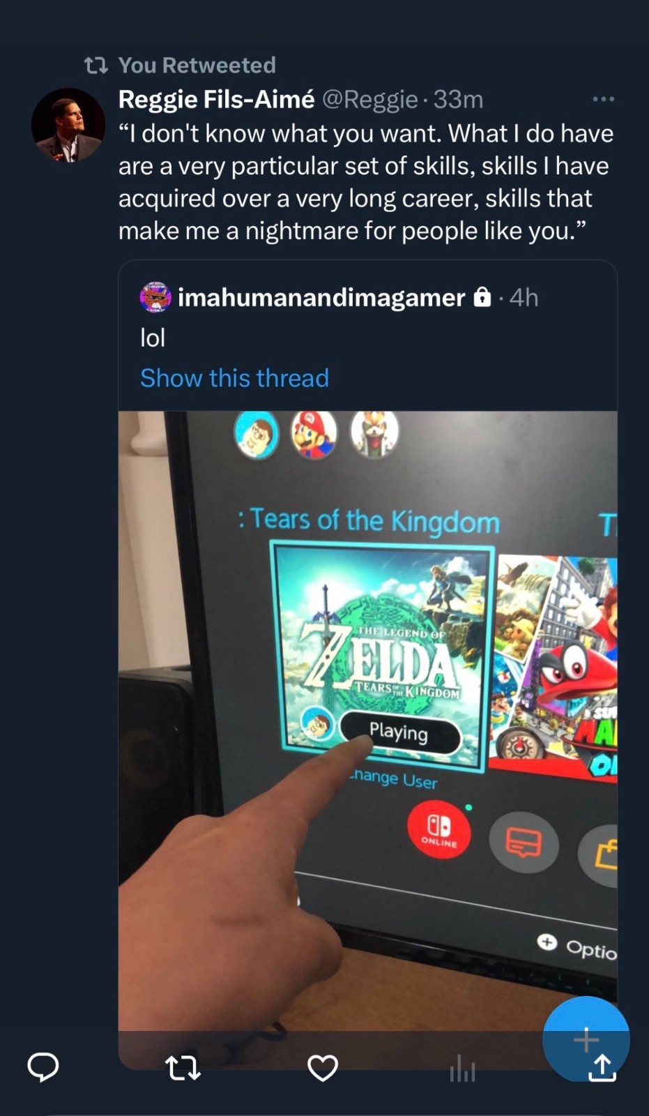 近日,已经退休的美国任天堂总裁雷吉在社交媒体上,直接回应拿到偷跑《塞尔达传说:王国之泪》的玩家。