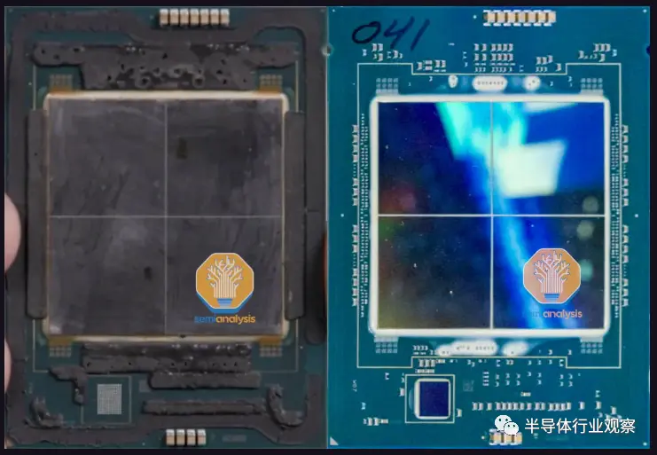 从上面显示的布局中,我们可以看出,尽管这两个小芯片非常相似,但它们实际上使用了不同的流片和掩模组,英特尔再次像 SPR 那样使用镜像芯片。使用旋转 180 度的相同裸片将使掩模组要求减半,但会使跨 EMIB 的多裸片结构 IO 复杂化。