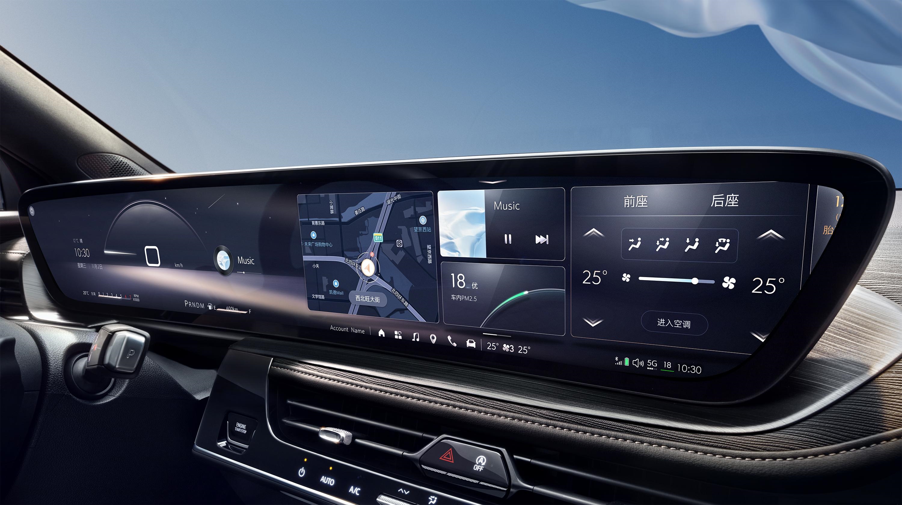 内饰采用全新一代VCS智能座舱设计,配备一块30英寸弧面6K屏幕,分辨率达6008*934,内置高通骁龙8155芯片,配合全新一代VIP智能电子架构,可提供5G通信技术以及多模块OTA并行升级。