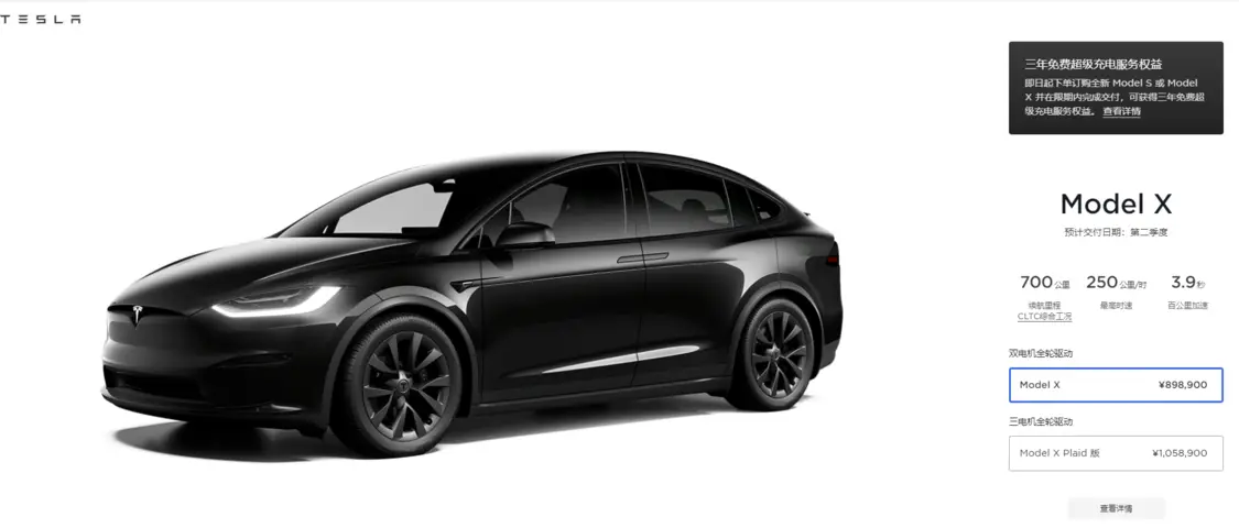 5月5日,特斯拉中国官网显示,全新Model S及全新Model X全系车型上调售价19000元。调整后,Model S起售价808900元,Model X起售价898900元。此外,5月2日,特斯拉中国官网显示,特斯拉Model 3在中国的售价涨至23.19万元,Model 3高性能版涨至33.19万元。