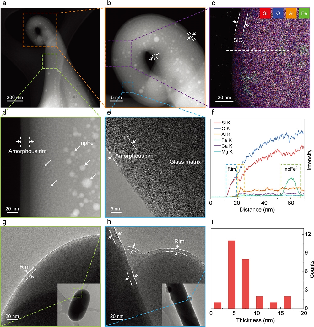 此外,嫦娥五号月壤表面的纳米沉积非晶层,远薄于阿波罗月壤样品,而且几乎不含有难熔元素以及纳米金属铁颗粒,仅由Si和O组成。