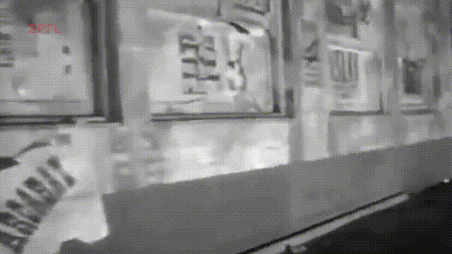 给一段上世纪60年代黑白老电影中截取的视频画面:一个男子向汽车跑去,打开了后备箱。