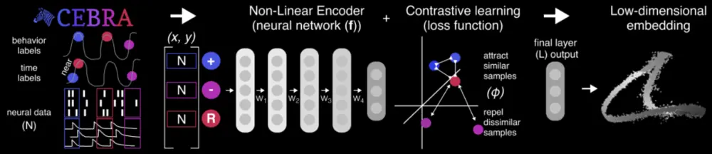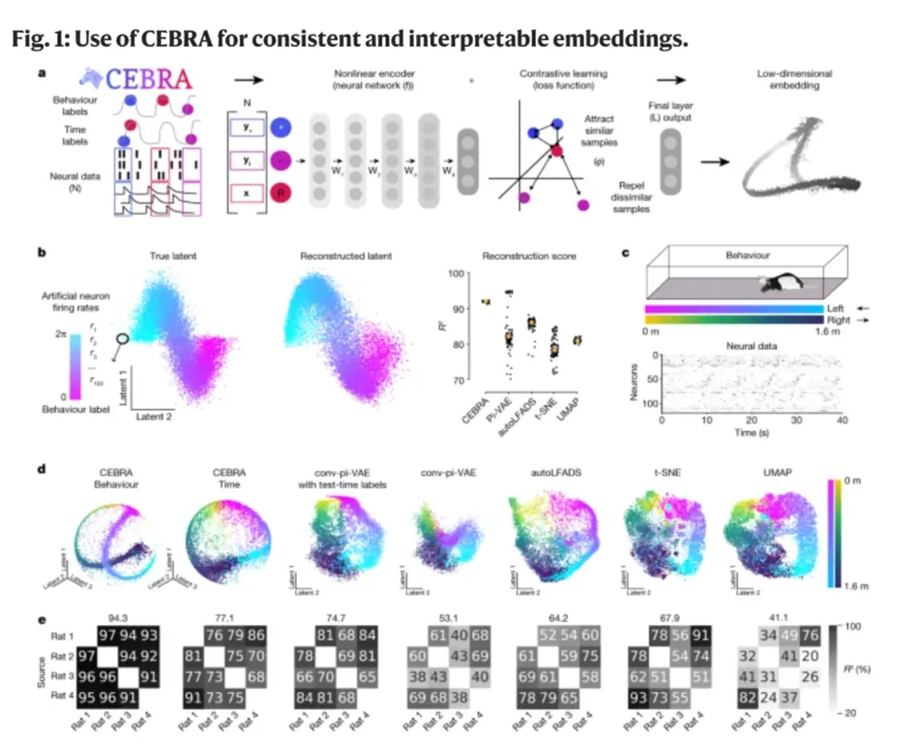 但是,研究者们一直缺乏可以灵活利用联合行为和神经数据揭示神经动力学的非线性技术,而CEBRA算法,填补了这一空缺。