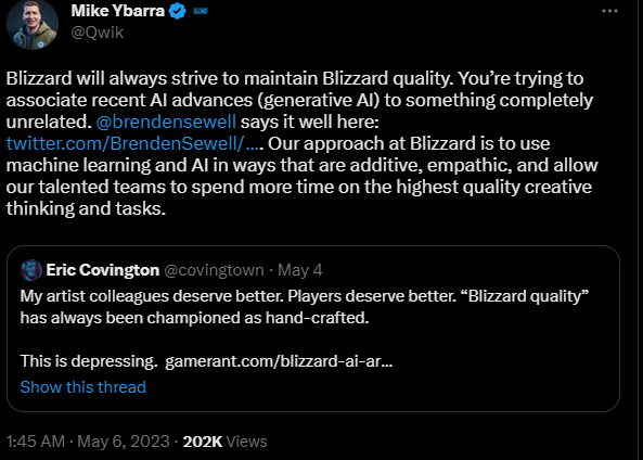 ·Mike Ybarra明确表示,针对该专利的消息,多家媒体直接报道称“暴雪也将明确进军AI界”,回应称“这似乎是与最近高速进步的AI毫无关系的强加臆测而已”。