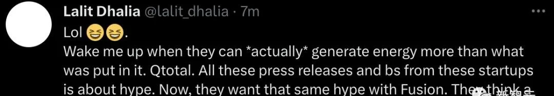 当他们能够“实际”产生比投入更多的能量时,再叫醒我。归根结底。所有这些新闻发布和来自这些初创公司的废话都是为了炒作。