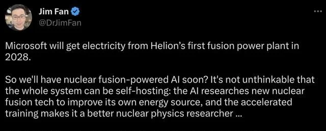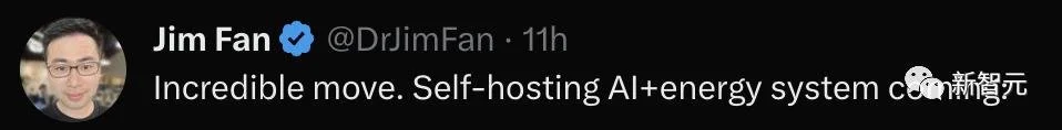 英伟达科学家Jim Fan称,“自托管的人工智能+能源系统即将到来。”