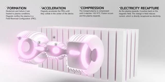 Helion创造核聚变及计划捕获电力发送到电网的过程