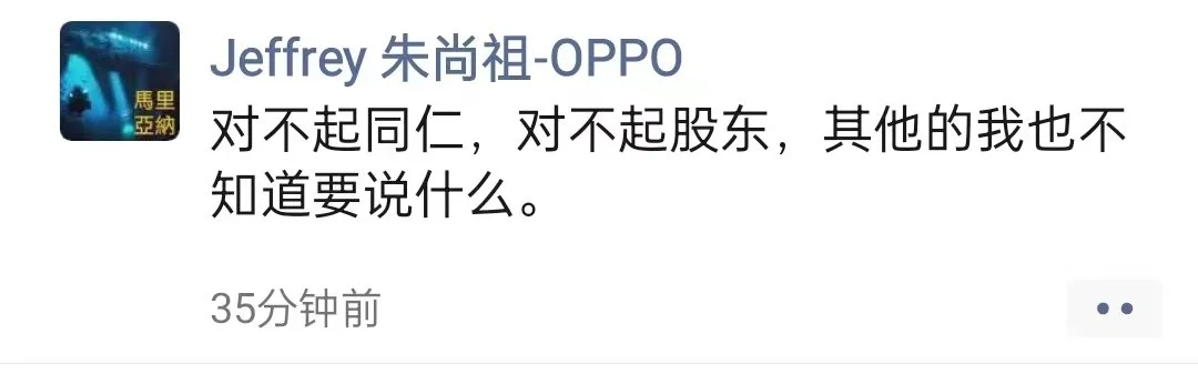 哲库COO朱尚祖在宣布公司解散后发布的一条朋友圈
