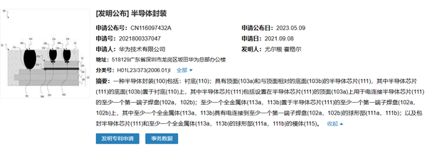 前几天,国家知识产权局又公布了华为技术有限公司的一项“半导体封装”专利,申请公布日为5月9日,申请公布号为CN116097432A。