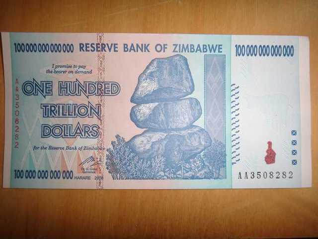 2008年7月,津巴布韦的通胀率达到了231000000%。2009年,津巴布韦央行曾发行100万亿面值的津元纸币,成为世界上“零”数最多的纸币。但这张100万亿津元的纸币,当时仅不过相当于40多美分。津元因此被中国网友戏称为“全球唯一能与天地银行一较高下的货币”。