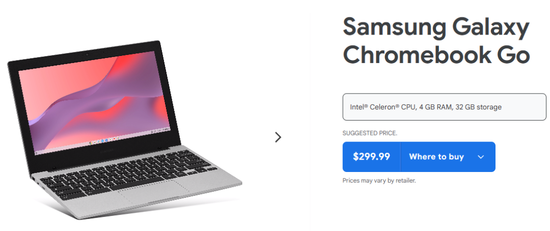 当然,也有三星 Galaxy Chromebook Go 这种只要 299 美元的极致丐版电脑,两千块出头可以拿下。