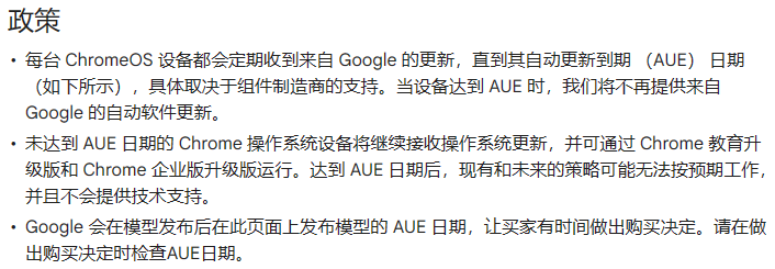 虽然这么比有点不地道,毕竟它俩价格都不是一个级别的,但你 Chromebook 终究还是一台电脑,这个 AUE 的设定会提前决定电脑的寿命。