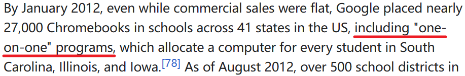 美国有些州的学校甚至还实现了 “ 一人一机 ” ,给每个学生都发了个 Chromebook ,反正这玩意儿便宜而且配置低不能打游戏。