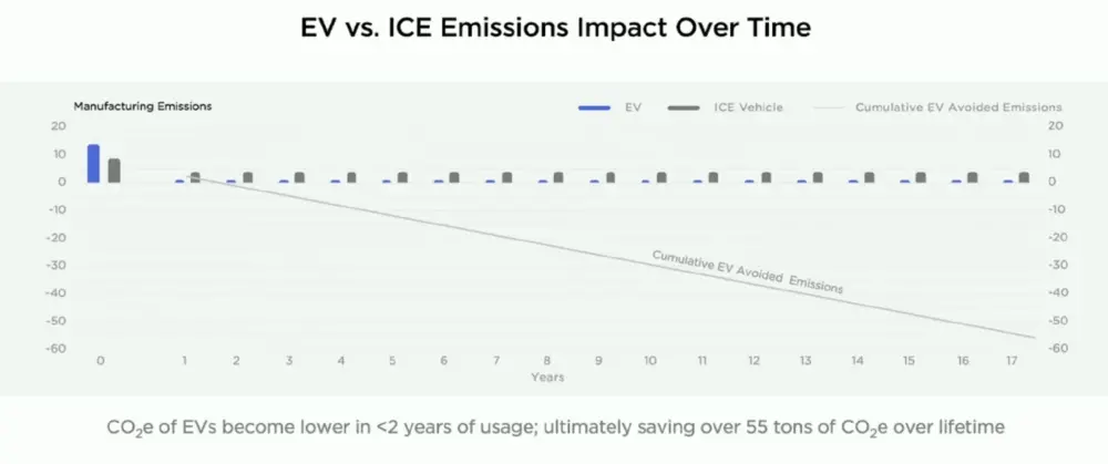 在减排方面,电动汽车与燃油车相比有绝对的优势,其生产成本在逐渐降低,而生产过程的排放也是非常低的,马斯克表示这样的降低趋势会随着时间推移更加明显。在2022年,特斯拉每辆车的温室气体排放同比减少30%、水量减少了15%。