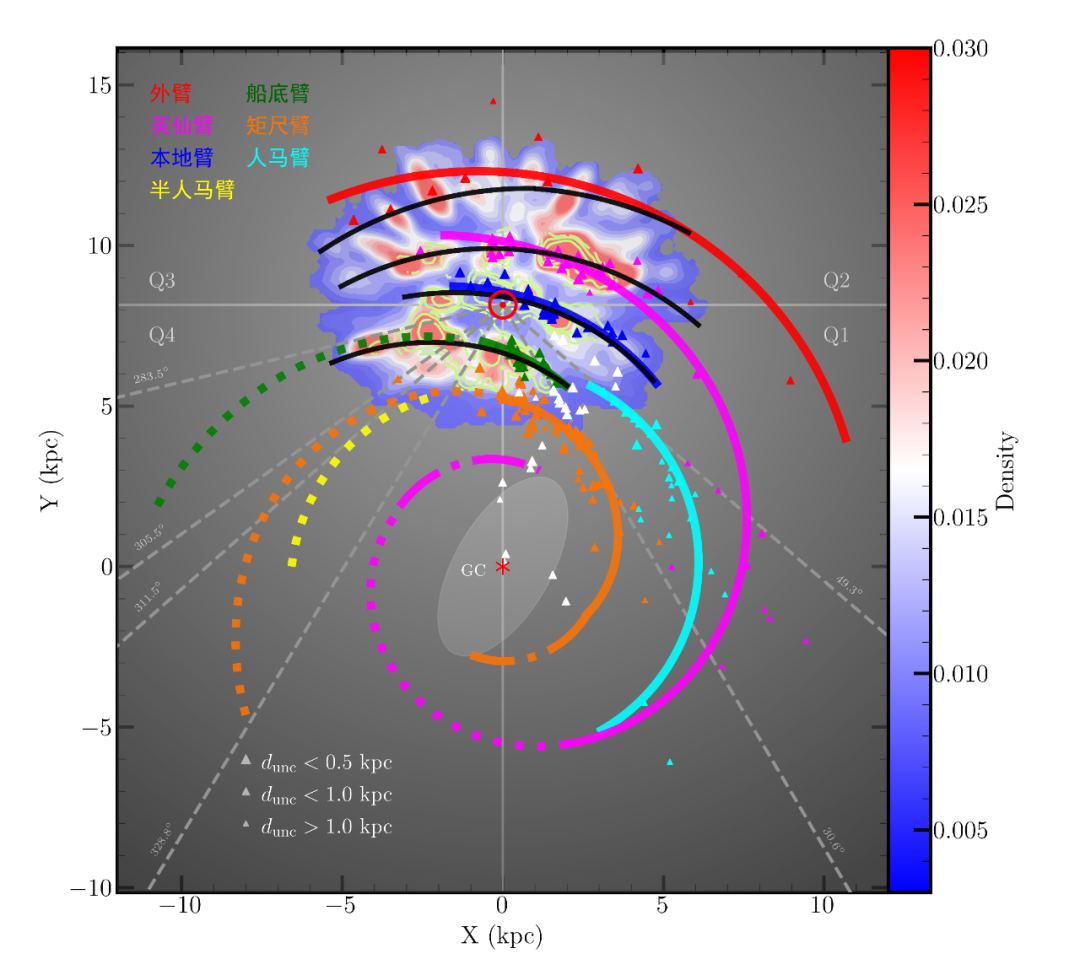 研究团队综合利用目前所能获得的全部高精度天体测量数据,使用天体脉泽、年轻恒星和疏散星团等作为定位旋臂的“灯塔”,对银河系旋臂结构进行了重新描绘。